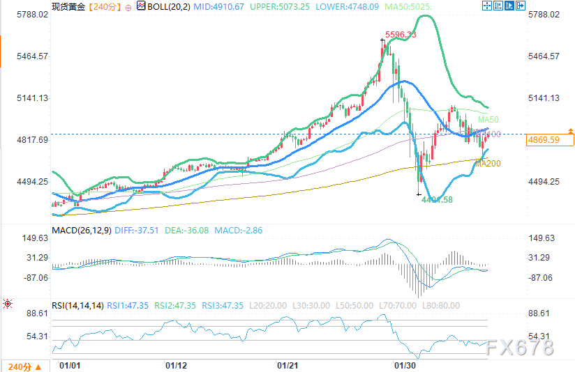 然而,潜在限制因素不容忽视。美国总统特朗普表示,若凯文·沃什(Kevin Warsh)有加息意愿,他当初就不会提名其为美联储主席,并强调联储降息“几乎没有疑问”。但市场担忧沃什作为即将上任的联储主席人选(已于1月30日获提名)可能采取较不鸽派立场,这或限制金价进一步上行空间。今日稍后,密歇根消费者信心指数初步值、通胀预期数据以及联储官员表态将成为焦点,将直接影响美元需求和金价走势。总体而言,金价短期获避险回暖、美元疲软及降息预期三重支撑,但地缘谈判结果和联储政策信号仍存不确定性。投资者需警惕波动加剧,建议关注4,900美元上方阻力与4,700美元下方支撑。