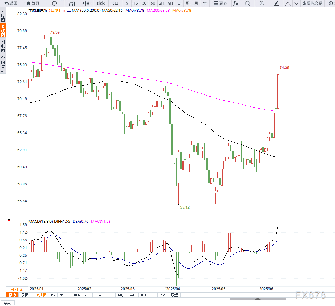 据能源咨询公司Rystad Energy高级分析师Lars Nilsen指出:“霍尔木兹海峡一旦受阻,全球原油日供应量可能瞬间减少超过1500万桶。这将令油价在短期内暴涨,甚至可能出现日内超过10%的波动。”   随着局势发展,能源交易商与物流企业正密切关注事态变化。任何实质性的地缘冲突,都可能在短时间内推高运输成本,并导致燃料价格快速上涨,进而波及全球产业链。   海运公司Maersk油气物流部门负责人Emily Carter表示:“中东局势的突发升级,使得能源航运保险费用快速飙升,部分航运公司已在评估调整航线,转向更长、更安全但成本更高的绕行方案。”   从技术面观察,美原油(WTI)日线图显示,油价在突破73美元关口后形成了明显的看涨吞没形态,同时MACD指标即将形成金叉,短期上升动能增强。   若后续站稳73美元上方,下一目标或将挑战75美元区域,反之若回落,下方支撑关注20日均线70美元附近。整体而言,地缘政治风险已成为短线主要驱动力,技术面走势与基本面风险高度叠加,后市波动或将进一步加剧。   在当前全球经济面临通胀压力与需求复苏不确定性的背景下,能源价格的持续走高无疑将加重全球经济体的成本负担。同时,市场情绪也普遍预期,若冲突扩大,美联储及各国央行的货币政策也可能面临更复杂的权衡。   据市场调查显示,多位资深能源分析师指出:“如果伊朗进行报复,或以色列展开更大规模打击,布伦特原油和WTI可能在短期内上探80美元甚至更高的水平。”