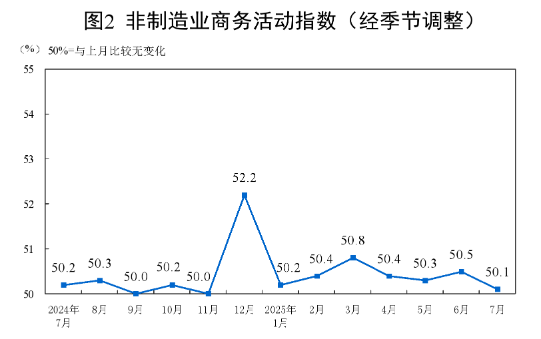7月份,非制造业商务活动指数为50.1%,比上月下降0.4个百分点,仍高于临界点。